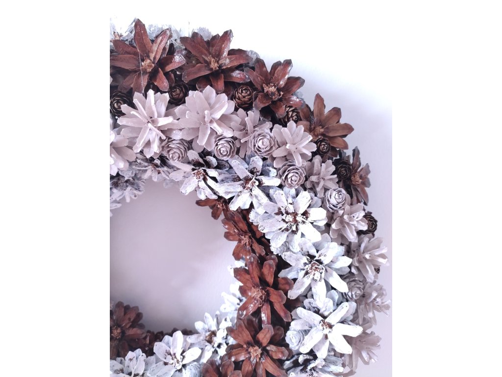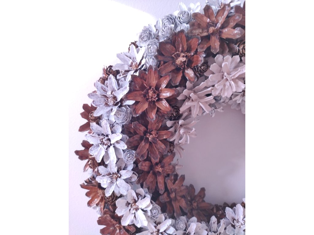 Věnec vydrží velmi dlouho i venku pod stříškou chráněný před deštěm.