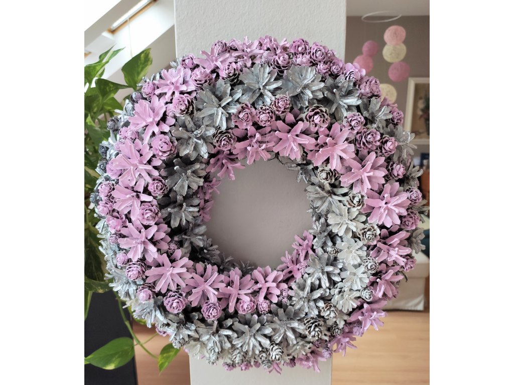 Věnec má průměr 30 nebo 37 cm. Vydrží velmi dlouho i venku pod stříškou, pokud je chráněný před deštěm. V interiéru vydrží roky. Bude zajímavý jak na dveřích,tak krásně vynikne i na zdi.