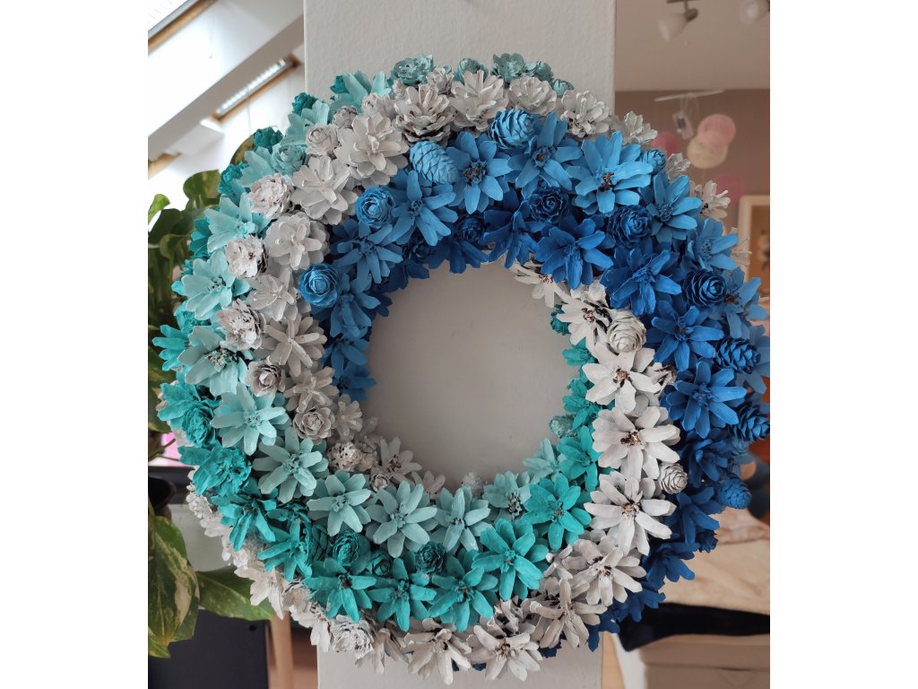 Věnec má průměr 30 nebo 37 cm. Vydrží velmi dlouho i venku pod stříškou, pokud je chráněný před deštěm. V interiéru vydrží roky. Bude zajímavý jak na dveřích,tak krásně vynikne i na zdi.